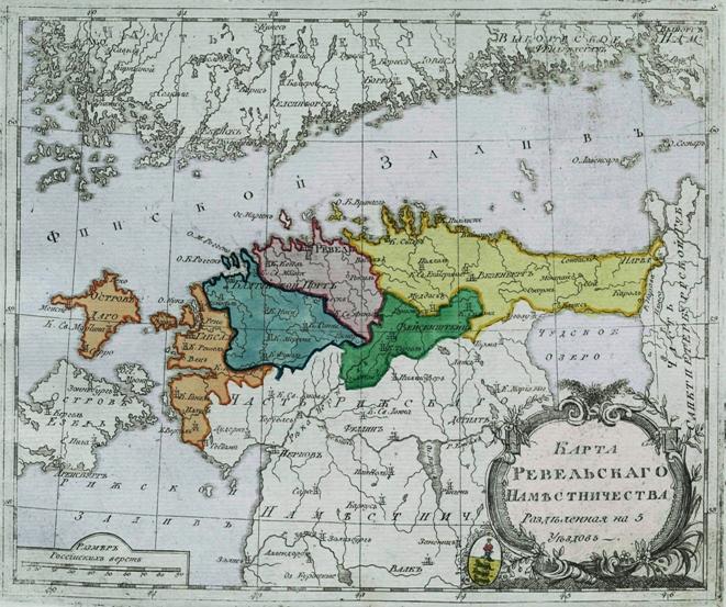 1793a Revali kubermangu (Eestimaa kubermangu) maakondade kaart |