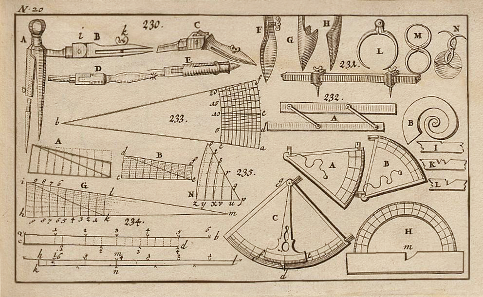 Seni lahtise diopteriga joonlaud asendus juba eelpool mainitud kippreegliga. Endiselt oli kasutusel mõõtekett (1769a maamõõ- duinstruktsioonis on nimetatud 25 küünra pikkust e umbes 13,25 meetri pikkust maamõõduketti. 1 küünar = 21 tolli = ca 53 cm), mensul ja kompass. Kippreegli asemel kasutati vähemalt Eestis maamõõtmisel endiselt laialdaselt viseerimisjoonlauda. |