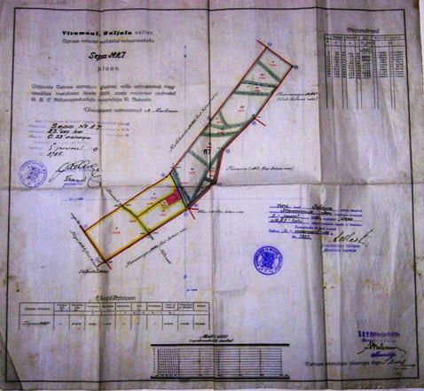 Väljavõte 1887a päriseks ostetud talumaa plaanist. 1871a Rakvere linna plaan * |