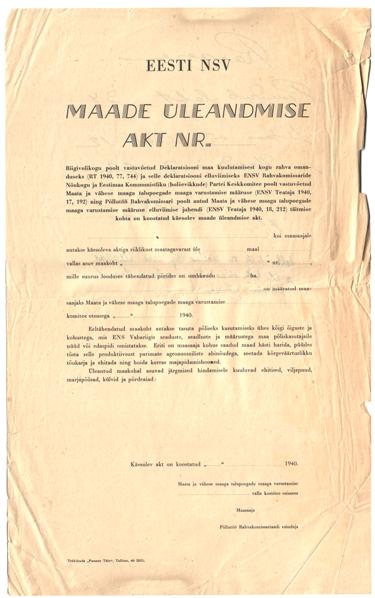 1933 aasta alguses koostati Maamõõteseaduse eelnõu. Eelnõu nägi ette vannutatud maamõõtja institutsiooni loomise ja Põllutööministeeriumi katastriarhiivi tükeldamise ning jaotamise maakondade kinnistusjaoskondade vahel. 26.märtsil 1934 võeti Maamõõteseadus vastu. See pidi hakka- ma kehtima 1. augustist 1935a kuid uue korra sisseviimisega oli raskuseid ja selle kehtima hakkamise aega lükati oktoobris 1935 edasi kuni 31. märtsini 1936a. Uue Maamõõteseaduse järgi pidi maamõõtja kes soovis saada vannutatud maamõõtjaks, esitama haridus- sotsiaalministeeri- umi kutseoskuse osakonnale kutsetunnistuse õpingute läbimise kohta ja tunnistuse vähemalt kolme aastase erialase praktika kohta. Teised isikud, kes soovisid saada vannutatud maamõõ- tjaks, pidid esitama Põllutööministeeriumi katastri- ja maa- korralduse osakonnale registreerimisavalduse, läbima vastava eksamikomisjomi eksami (komisjoni juhtis Peeter Päts), andma maamõõtja vande ning maksma 500 krooni tagatisraha. Tagatisrahast kaeti vajadusel kõik maamõõtja tegevusest tekkivad võimalikud kahjud. Uute vannutatud maamõõtjate nimed avaldati Riigi Teatajas. Mais 1935 said tunnistused esimesed vannutatud maamõõtjad, kelleks olid Hans Bergmann, Kristjan Tults, Albert Tõnson ja Edgar Kender. Enne seda Eestis vannutatud maamõõtjaid ei olnud. Põllutööministeeriumi juurde loodi Geodeetiline komitee mida juhtis Põllutööministeeriumi Katastriameti juhataja Karl Puhvel. Paralleelselt Põllutööministeeriumi Katastriametiga andis kar- tograafilisi materjale välja sõjaväe topo-hüdrograafiaosakond. 1934 andis Topo-hüdrograafiaosakond välja Eesti topograafi- lise ülevaatekaardi mõõtkavas 1:200 000. Alusmaterjalina kasutati vene topokaarte mõõtkavas 1:25 000 ja 1:50 000. 1930 hakkas Katastriamet välja andma skeemilisi kaarte mõõt- kavas 1:10 000 (tuntud ka kui „ruutkaardid“ või ülevaatekaar- did). Kaardid joonestati vajalikus mõõtkavas kasutades kopee- rimisel selleks pantograafi ja talude originaalplaane. Kaardid anti välja erinevatel aastatel ajavahemikus 1931-1944. Need kaardid olid põhiliseks alusmaterjaliks taasiseseisvunud Eestis maareformi läbiviimisel, kui hakati tagastama endiseid talumaid. 1930-1934 anti välja esimesed 34 kaardilehte, 1935 aga juba 239 lehte, 1936 – 267, 1937 – 207; 1938 – 301; 1939 – 155; 1940 – 96; 1942 – 11; 1943 – 25 ja 1944 – 29 lehte. Kokku 1362 kaardilehte mõõtkavas 1:10 000. Kaartidele on kantud põlistalude nimed ja/või numbrid ning asundustalude nimed ja/või numbrid, mida hakati eraldama 1919 aastast. Asundustalude numbri ees on täht A. Ühe kaardilehe kaardi- mõõdud on 55 x 57,5 cm (raamjoon 57 x 59,5 cm) ja selle ulatus on 3193 ha. Talude plaane anti alates 1927 aastast välja põhiliselt kolmes normaalmõõtkavas: 1:2000 (väiksemad kui 10ha) ; 1:4000 (suuremad kui 10ha) ja 1:5000 (1927aastani kehtinud normaal- mõõtkava). Talude plaanid joonestati käsitsi üldjuhul vahapabe- rile ja värviti samuti käsitsi. Talude plaanidest valmistati maa hindmise tarbeks koopiaid (Maa hindamise plaane). Koopiad olid kas üksiku talu kohta või kopeeriti ühele plaanile mitme naabertalu plaanid ja saadi niiviisi kas piirkonnakaart või terve küla kaart. Maade hindamine lõpetati 1932 aastal. |