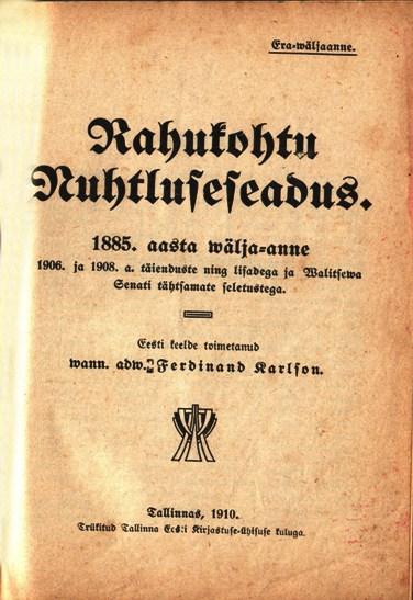Liivimaa talurahva seaduse kinnitas keiser Aleksander I 20.02.1804a ja Eestimaa talurahva seaduse sama aasta 27. augustil. Selle alusel oli keelatud talupoegi ilma maata müüa. Mõisale koormiste maksmine hakkas sõltuma kõlvikute pindalast ja kvaliteedist. Vastu võeti veel rida erinevaid seaduseid, mis talurahvale suuremaid õiguseid pidid andma. Seadused anti välja ka kirjatrükis (Eestima Tallorahwa Kohto-Seädus, ehk Walla-kohto Käso-ramat ; Seädused Maa-rahwa pärralt antud, kes Liwlandi Gubermenti wallitsuse all ellavad ; Seädused Maa-rahwa pärralt jne). |