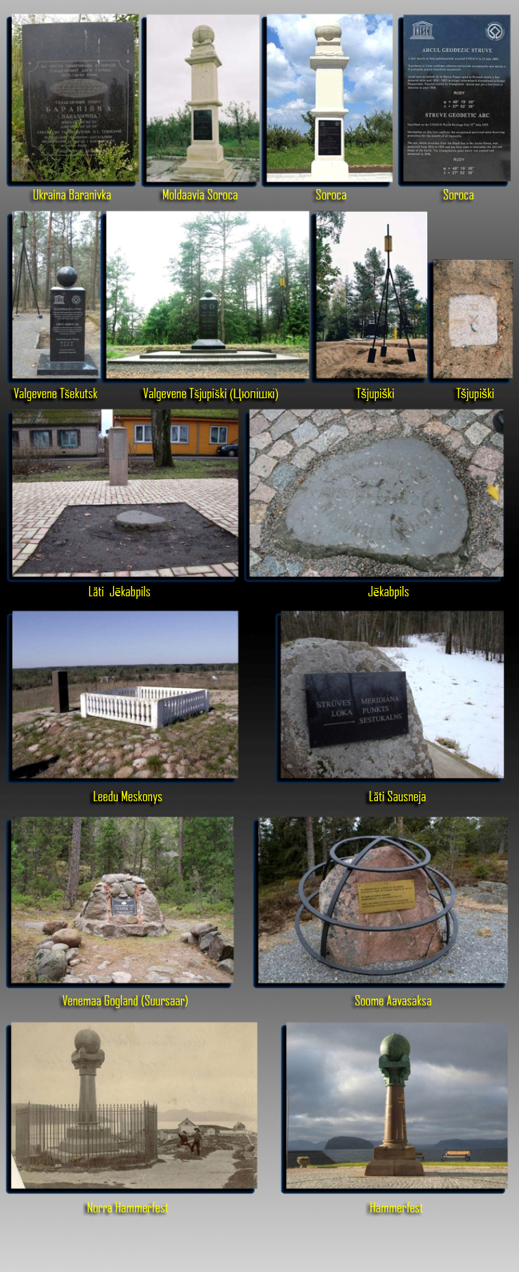 Friedrich Georg Wilhelm Struve Carl Friedrich Tenner Katko (Simuna) baasjoone otsapunktid F.F.G.L. von Wrangell ja F.B. von Lütke Reichenbach & Ertel 1821. universaalteodoliit (Tartu Ülikooli Ajaloo Muuseum) Simuna baasjoone Võivere punkti esmane ülevaatus muinsuskaitseameti poolt pärast selle leidmist 2002a. Märkmed on teinud Muinsuskaitseameti Lääne-Virumaa vaneminspektor Anne Kaldam Struve-Tenneri meridiaanikaare mõõtmine Struve meridiaani mõõdistuspunkte mujalt maailmast |